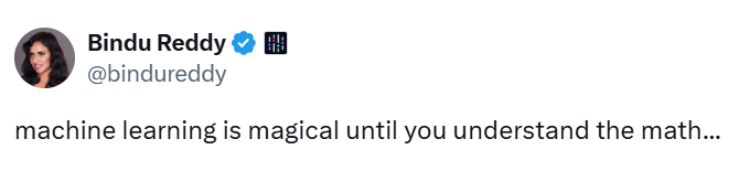 โควทที่ผมมักจะยกเสมอเวลาพูดเรื่องนี้มาจากทวิตของคุณ Bindu Reddy CEO และ Co-Founder ของ Abacus.AI ที่ว่า