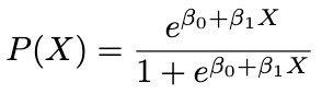 พูดถึง Logistic Function มาตั้งนาน ยังไม่เคยให้ดูสมการเลยสักที นี่คือสมการของมันฮะ เห็นไหมว่ามันคือการพยายามทำนายความน่าจะเป็น P(X) ด้วยค่า X โดยมีพารามิเตอร์สองตัวคือ β₀ กับ β₁ นั่นเอง