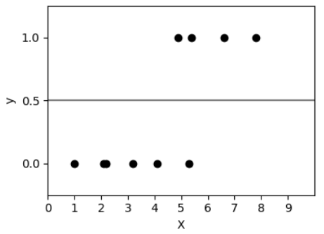 สำหรับกรณีที่ง่ายที่สุด ถ้าเราต้องการทำ Classification อะไรสักอย่างด้วยข้อมูลเพียงค่าเดียว แปลว่าข้อมูลที่อยู่ในมือเราจะมีหน้าตาเป็นคู่อันดับ (X,y) เมื่อ X คือค่าที่เราจะเอาไปใช้ทำนาย ส่วน y คือกลุ่มที่มันอยู่ ซึ่งคือค่าที่เราต้องการทำนาย ในที่นี้ให้มีแค่สองกลุ่มแล้วกัน คือกลุ่ม 0 กับกลุ่ม 1