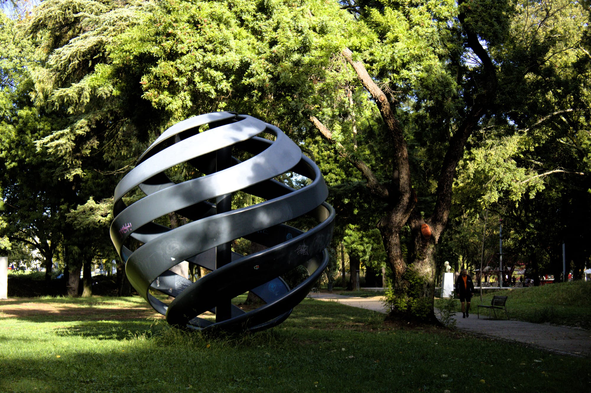 หรือที่ปลายด้านใต้ของสวนคัมโป กรานเด (Campo Grande) จะมีงานศิลปะหน้าตาเป็นลูกกลม ๆ ที่มีลากเส้นเป็นแถบ ๆ สำหรับคนทั่วไป นี่อาจจะดูเหมือนก็เป็นแค่งานศิลปะสักชิ้นหนึ่งเท่านั้น เพราะมันไม่ได้มีคำอธิบายหรือป้ายอะไรบอกอยู่เลย แต่สำหรับคนที่รู้ จริง ๆ แล้วทรงกลมที่เห็นนั้นคือลูกโลก และเส้นที่เห็นว่าลากเป็นเกลียวรอบ ๆ มันนั้นคือเส้นรัมบ์นั่นเอง