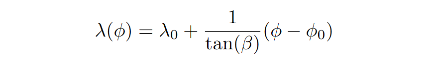 ให้ λ คือเส้นลองจิจูดและ ϕ คือเส้นละติจูด ความสัมพันธ์ระหว่าง λ และ ϕ บนเส้นโลโซโดรมเป็นดังนี้